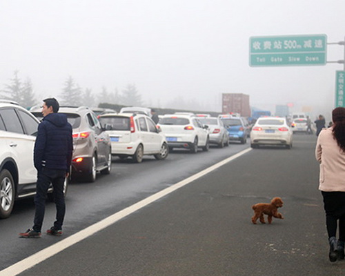 女子高速公路上遛狗被拍下