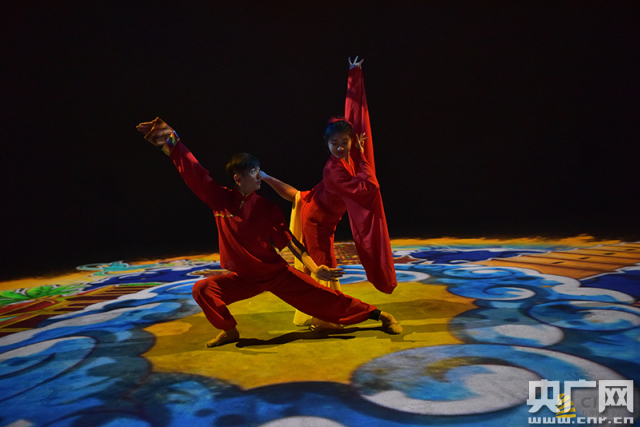 《樂(lè)享春節(jié)》以手繪年畫(huà)、中國(guó)民族舞蹈與三維投影技術(shù)相結(jié)合的表現(xiàn)形式,通過(guò)舞蹈演員與中國(guó)版圖互動(dòng),展現(xiàn)發(fā)生在中國(guó)廣袤大地上豐富多彩的文化民俗和喜慶祥和的春節(jié)圖景。