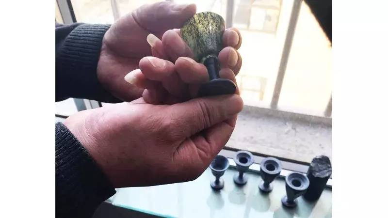 夜光杯能夠在光照下通體透亮,也得益于杯體的薄如蛋殼,近乎透明。要把巨大的祁連玉石料加工成這么薄,一方面要求玉本身韌性好,另一方面就要看制作師傅的手藝了。