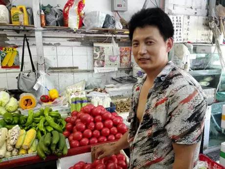 黝黑的膚色、鮮亮的穿著,沈大哥在不大的攤位里輾轉(zhuǎn)騰挪、十分自如。他的攤位在市場門口,雖然看上去有些簡陋,但蔬菜都十分鮮亮誘人。