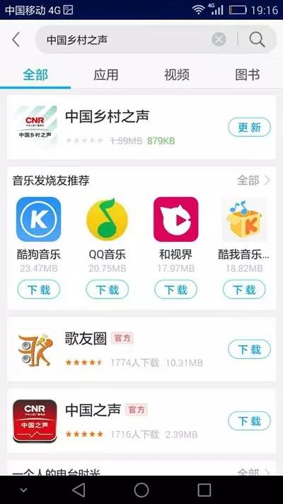 2、可到應(yīng)用寶等各大市場(chǎng)下載“中國(guó)鄉(xiāng)村之聲”手機(jī)客戶端,直接聽(tīng)。