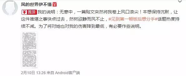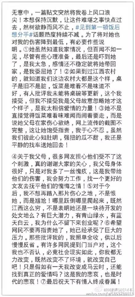 面對網(wǎng)上的眾說紛紜,2月10日,事件中的江西男友終于在微博上發(fā)表聲明,表示江西“有巨大潛力,有青山綠水,有藍天白云,我為什么不留下來創(chuàng)業(yè)呢”。這位江西小伙決定“改變自己”,留在家鄉(xiāng)創(chuàng)業(yè)的做法得到了許多網(wǎng)友的點贊。