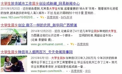 在百度里輸入“大學(xué)生 回鄉(xiāng)”兩個關(guān)鍵詞,搜索到的內(nèi)容達到273萬條。