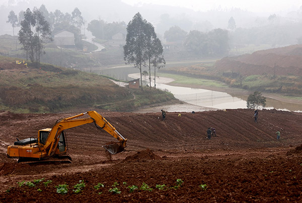 2月23日,四川省華鎣市祿市鎮(zhèn)小驢山村的農(nóng)民在整理農(nóng)田,準(zhǔn)備春播春種。