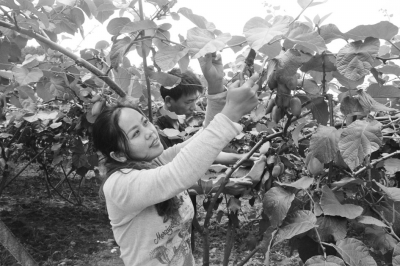 菖蒲塘村女子嫁接服務(wù)隊正在為獼猴桃剪枝。張振中攝