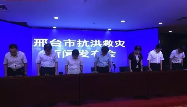 7月23日晚10點(diǎn)半,邢臺(tái)市召開新聞發(fā)布會(huì),邢臺(tái)市市長(zhǎng)董曉宇代表邢臺(tái)市市委市政府向所有的遇難、失蹤者親屬和受災(zāi)群眾表示道歉,表示本次洪水導(dǎo)致重大傷亡有三個(gè)方面的原因: