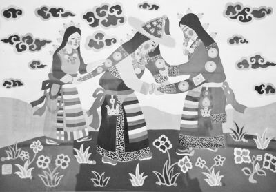 青海湟中農(nóng)民畫《扮新娘》。安永霞作