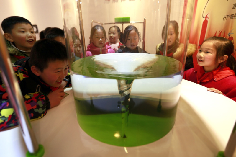 12月19日,小學生在科普館觀看“流體力學”演示。當日,江蘇省淮安市盱眙縣首家村建科普館盱城街道新灣村科普館正式投入使用。該館占地面積約200平方米,設有“魔幻科技”“聲光體驗”“運動旋律”“體質測試”等八個主題,內容涵蓋電學、光學、聲學、力學等多門學科,免費為村里青少年提供了一個親身體驗科技魅力、了解科學知識的場所。新華社發(fā)(周海軍 攝)
