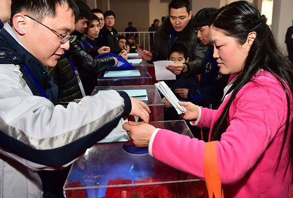 2月26日,回遷居民在進(jìn)行安置房抽簽分配。