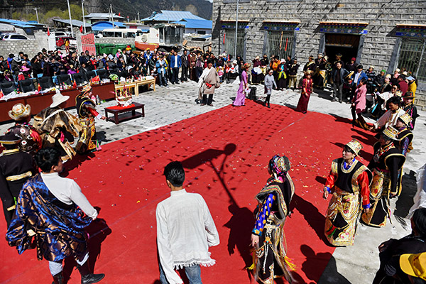 3月27日,西藏林芝市巴宜區(qū)八一鎮(zhèn)章麥村村民跳鍋莊舞歡慶西藏百萬農(nóng)奴解放紀(jì)念日。
