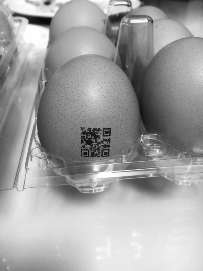圖為印著二維碼的雞蛋。楊迪攝