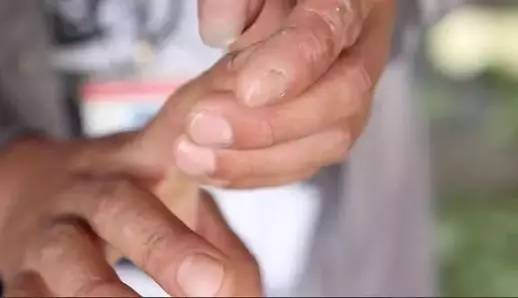 朱林杰就是其中一名驗(yàn)瓜師,因?yàn)橐惶烨霉蠑?shù)千只,到七八月份,他的右手食指便會鼓起老繭,甚至化膿。一直要養(yǎng)到冬天,老繭才能褪去。長繭消繭9年,朱林杰練就一手“彈指神功”。