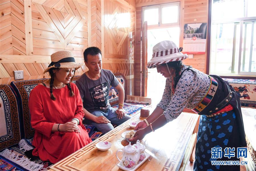 今年以來,甘肅省甘南藏族自治州依托獨特的生態(tài)環(huán)境和豐富的旅游資源,大力推進全域旅游和實施旅游脫貧富民工程。在突出藏族特色、注重保持原生態(tài)鄉(xiāng)村風(fēng)貌的基礎(chǔ)上,對原有農(nóng)牧民定居點進行景區(qū)化升級改造,打造出尕秀、香告、扎尕那等近百個藏族文化特色濃郁的旅游示范村,鼓勵和引導(dǎo)農(nóng)牧民群眾發(fā)展“牧家樂”鄉(xiāng)村旅游。新華社記者陳斌 攝