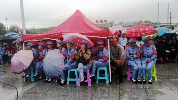 ▲群眾打傘看演出,熱情似火蓋過了大雨