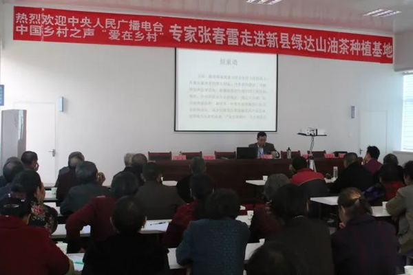 以中國農(nóng)業(yè)科學(xué)院油料作物研究所專家張春雷為主的農(nóng)技小組一行人,在28日上午9點來到新縣綠達油茶種植基地,為趕來聽課的老鄉(xiāng)們做了題為”油茶豐產(chǎn)栽培技術(shù)”的講座。