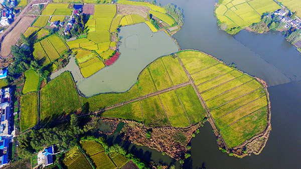 10月30日航拍的揚(yáng)州市槐泗鎮(zhèn)稻田美景。
