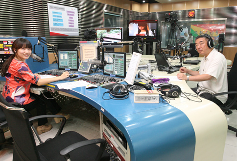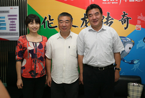 中央人民廣播電臺臺長王求與邵恩在直播間合影留念