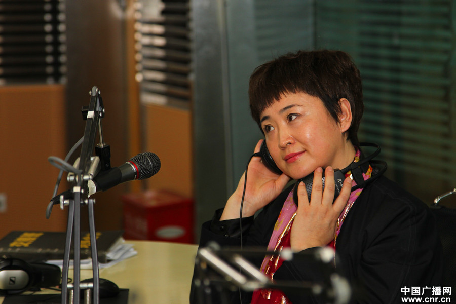 國家京劇院荀派花旦、國家一級演員關波做客《中國大舞臺》。(中廣網 張曈攝)