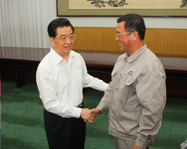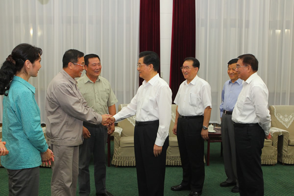 中共中央總書記、國家主席、中央軍委主席胡錦濤等領導同志親切接見《郭明義》劇組主創(chuàng)人員。