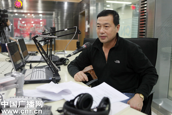 3月10日遼寧人民藝術(shù)劇院演員、郭明義的扮演者李躍民做客中國大舞臺直播間(中廣網(wǎng)記者 李雪南攝)