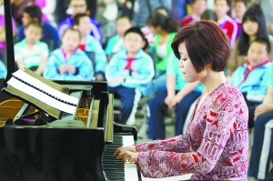 從海頓到舒伯特,再到《水草舞》、《歡樂的牧童》,陳薩精心為孩子們選擇了多首相當動聽的中外鋼琴小品,并以講演結合的方式,為孩子們生動講述了這些動聽曲子的背景和故事,讓孩子們感受到了室內樂輕松幽默又或是靜謐甜美的另一個側面,從音樂中聽到了從未聽到過的“童話故事”。演奏間歇,她還鼓勵孩子們走上前來,試著觸摸鋼琴。其中一名患有自閉癥的孩子聽了陳薩彈奏的一首《天空之城》后竟然能模仿得有模有樣,雖然只是簡單的旋律,但也讓陳薩非常激動。“我不知道一次音樂會能給這些孩子帶來什么,也許并不能完全打開他們的世界,但卻可以尋找一種和他們交朋友的方式,讓他們知道世界并不是那么的孤單!标愃_說。