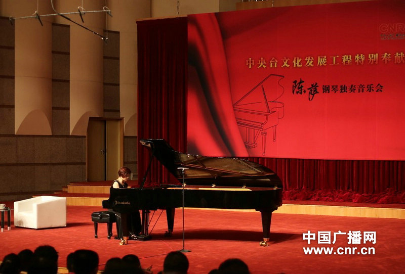中廣網(wǎng)北京7月24日消息 著名鋼琴家陳薩24日晚在中央臺(tái)音樂(lè)廳舉辦了獨(dú)奏音樂(lè)會(huì)。圖為陳薩在演奏羅伯特·舒曼的《幽默曲》,全場(chǎng)靜聲聆聽(tīng),沉醉于柔美的鋼琴樂(lè)曲中。