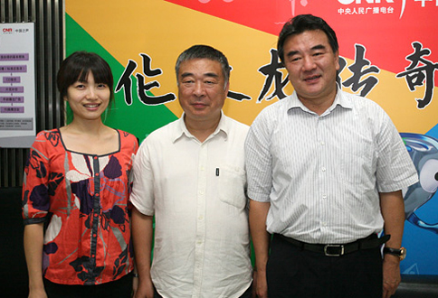 中央人民廣播電臺(tái)臺(tái)長(zhǎng)王求與邵恩在直播間合影留念