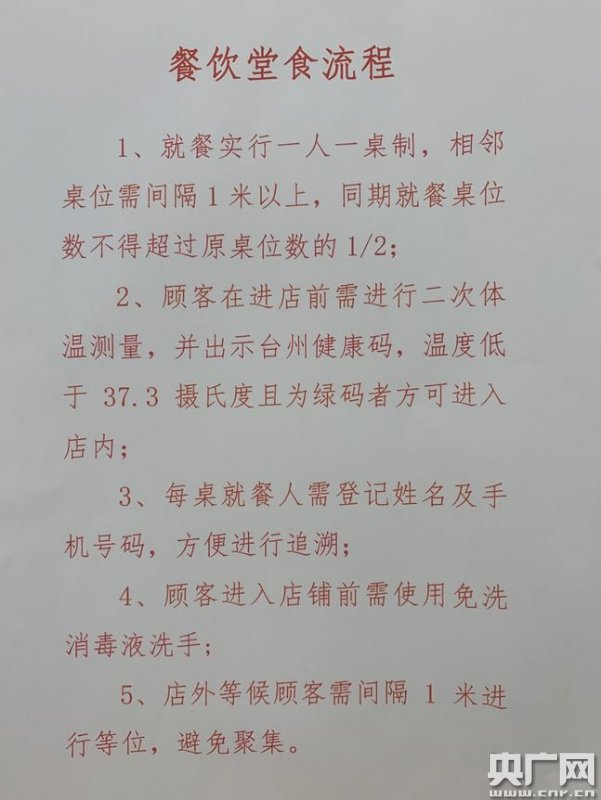 據(jù)了解,市民想要進(jìn)入這10家餐飲店就餐,需要嚴(yán)格遵守相關(guān)的規(guī)章制,每一位進(jìn)餐飲店就餐的消費者必須出示綠色健康碼,測體溫,登記姓名和聯(lián)系方式,一人一桌,只允許就餐時摘下口罩,盡量使用掃碼點餐、掃碼支付等。