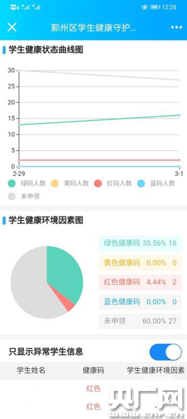 “班主任花一個星期統(tǒng)計的數(shù)據(jù),在平臺上幾秒鐘就呈現(xiàn)完成,學生返校時不用一一核對健康碼,可以節(jié)約大量時間。”鄞州區(qū)朝暉實驗學校是一所外來民工子弟學校,校長馬任在平臺上線首日監(jiān)測全校1326名學生發(fā)現(xiàn),目前已有6名在湖北的學子為紅碼,有412名學生未領(lǐng)健康碼,學校正催促家長為孩子領(lǐng)碼完善大數(shù)據(jù)監(jiān)測。
