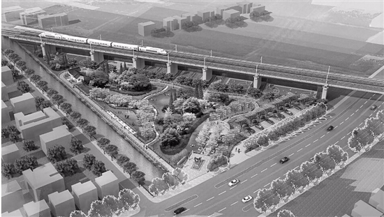 從效果圖上看,整個公園設(shè)計得很巧妙,把鐵路高架運用得恰到好處。