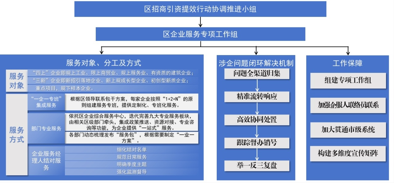 “根據(jù)區(qū)領(lǐng)導聯(lián)系包干方案,我們對每家企業(yè)按照‘1+2+N’的原則組建服務(wù)專班,提供‘一企一專班’的集成化、專班化服務(wù)!苯眳^(qū)營商環(huán)境辦相關(guān)負責人介紹,為了確保服務(wù)“不落一人”,江北區(qū)采取了線上線下雙管齊下的模式。線上依托市“企呼我應(yīng)”平臺,聯(lián)動“8718”公共服務(wù)平臺、12345熱線、“浙里辦”等渠道,提供全天候、全渠道的訴求受理與智能服務(wù);線下按照專班、部門、企業(yè)服務(wù)經(jīng)理人、項目服務(wù)專員及屬地兜底模式,結(jié)合黨建指導員,實現(xiàn)面上全覆蓋。
