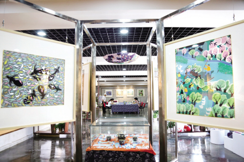 日前,嘉善縣姚莊鎮(zhèn)洪福路洪福印象館的農(nóng)民畫舍令人耳目一新。據(jù)了解,洪福印象館由農(nóng)民畫舍和大往展廳兩部分組成,陳列了老照片和大往圩農(nóng)耕文化的系列展品,并展示了利用農(nóng)民畫開發(fā)出的雨傘、鞋子、鼠標(biāo)、扇子等科創(chuàng)產(chǎn)品近200件。( 攝影 胡凌翔)