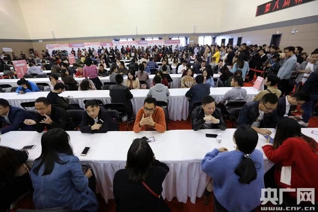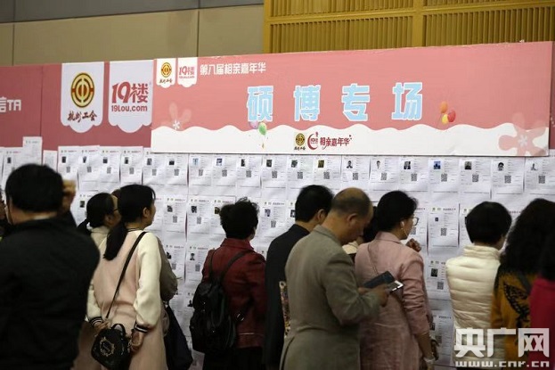 央廣網(wǎng)杭州11月12日消息(魏煒 攝)11月11日,在杭州市職工文化中心舉辦的2018第八屆相親嘉年華大型公益相親會(huì)盛大開幕。據(jù)主辦方杭州總工會(huì)相關(guān)負(fù)責(zé)人介紹,本次相親會(huì)吸引了近4000位杭州各行各業(yè)的單身青年報(bào)名參與,其中本科及以上學(xué)歷的占70%,年薪10萬(wàn)以上的占80%。