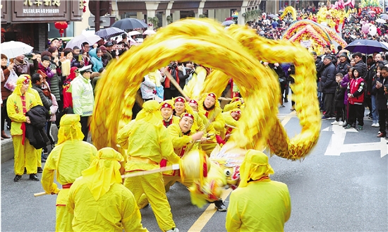 2月17日,德清縣乾元鎮(zhèn)舉行乾龍燈會活動,祈福美好生活。2009年,乾龍燈會被列為省級非物質(zhì)文化遺產(chǎn),表演吸引來自四面八方的游客前來觀看。(記者 倪雁強 拍友 王正 攝)