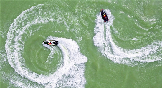 4月15日,浙江正式入汛。4月14日,長興縣虹星橋鎮(zhèn)、水口鄉(xiāng)等地舉行防汛減災(zāi)應(yīng)急綜合實戰(zhàn)演練,開展水中救援、轉(zhuǎn)移被困群眾等課目訓(xùn)練,增強(qiáng)防汛應(yīng)急處置和搶險救災(zāi)能力。(拍友 譚云俸 攝)
