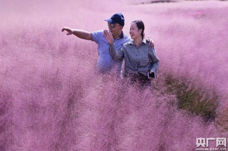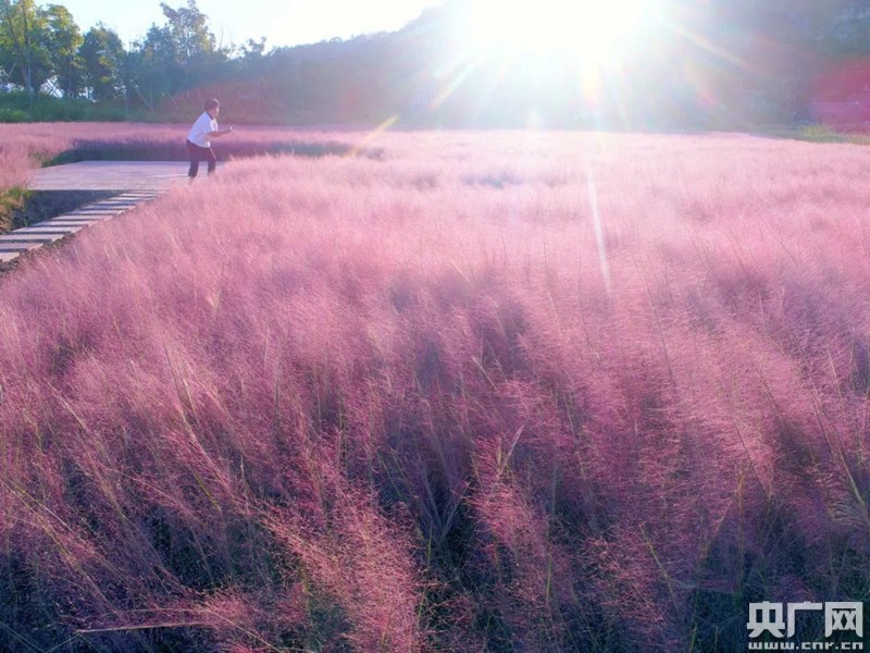9月底,蛇蟠鄉(xiāng)的粉黛亂子草,逐漸綻放在微風(fēng)中搖擺,如夢(mèng)似幻像是一叢叢粉色的云霞飄散在綠草之上,大有“云蒸霞蔚”之勢(shì)。