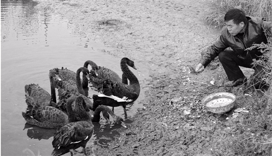 劉善云說,只要黑天鵝喜歡在蝦塘過冬,就算把蝦塘里的東西吃光了,他也心甘情愿。