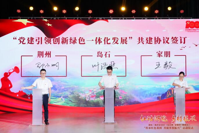 為慶祝建黨一百周年、全面推進(jìn)鄉(xiāng)村振興,6月17日,浙皖三地革命老區(qū)(島石鎮(zhèn)、家朋鄉(xiāng)、荊州鄉(xiāng))“傳承紅色基因,共促鄉(xiāng)村振興”活動(dòng)在杭州市臨安區(qū)島石鎮(zhèn)正式啟動(dòng)。