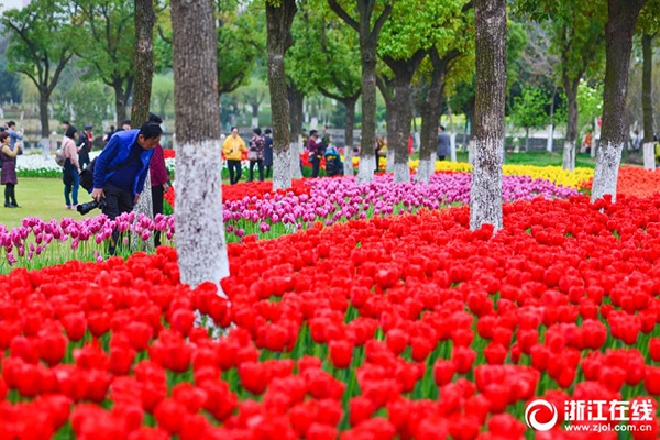 3月15日,寧波院士公園12萬株郁金香競(jìng)相開放,游人紛紛前來游覽,享受春光。