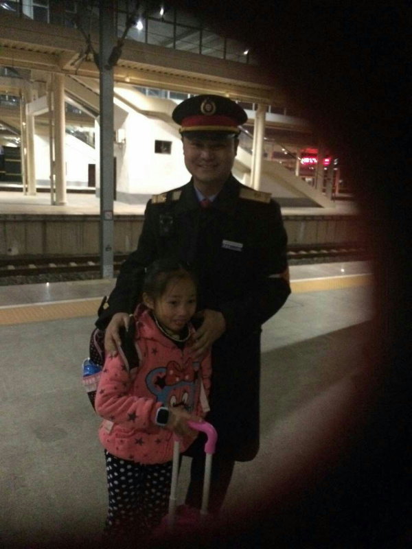 1月16日傍晚18點57分許,義烏火車站10號站臺G1654次正點發(fā)車,車站客運員宋杰發(fā)現(xiàn)有一個小女孩孤單的站在10站臺5號地標處哭泣。